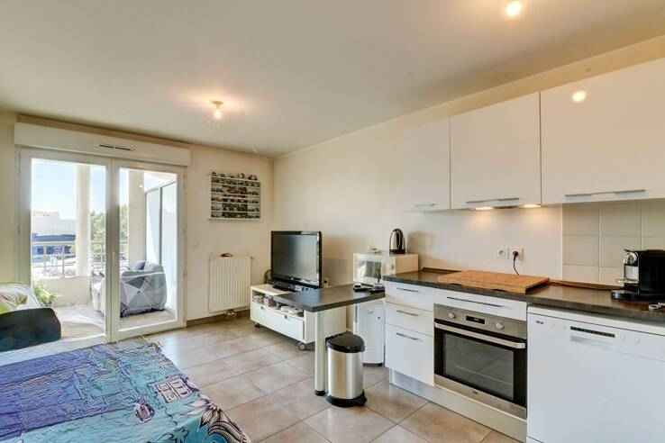 Канны-ла-Бокка, район Франсис Тоннер, рядом со всеми удобствами, транспортом, морем, в современной резиденции с низким потреблением, здание, соответствующее нормам для инвалидов. Апартамент с 3 комнатами на 2-м этаже с лифтом включает: вход с гардеробом, американскую кухню, объединенную с гостиной и выходом на террасу, две спальни с гардеробами, выходящими на террасу, ванную комнату, отдельный туалет, соответствующий нормам для инвалидов. В комплекте две парковочные места в подземном гараже. ☀️