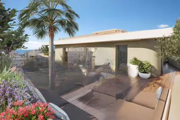 В Каннах, на расстоянии пешей прогулки до пляжей и магазинов, предлагается пентхаус с террасой на крыше и видом на море, площадью 126 м², расположенный на 8-м и последнем этаже с личным лифтом.