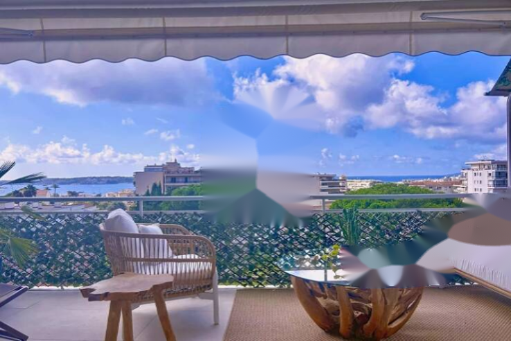Изумительный двухкомнатный апартамент высокого класса с панорамным видом на море, охватывающим Бухту Канн и острова Лерин.