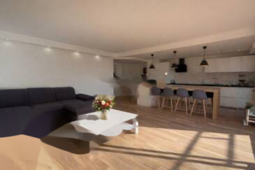 Приемная: большой светлый салон с современной американской кухней, полностью оборудованной.