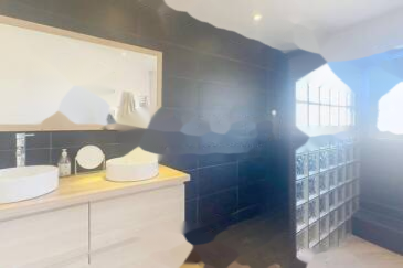 Сьюты и ванные комнаты: главная спальня с приватной ванной комнатой (душевая кабина и туалет), вторая отдельная ванная комната и гостевой туалет.