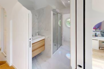 Эта вилла имеет 6 комнат, включая 4 спальни, одна из которых - родительский люкс на первом этаже с ванной комнатой (спа и душ), гардеробной и отдельным туалетом; студия с независимым входом на уровне сада и две другие спальни на этаже с душевой комнатой и туалетом; а также мансарда с кондиционером и паркетом.