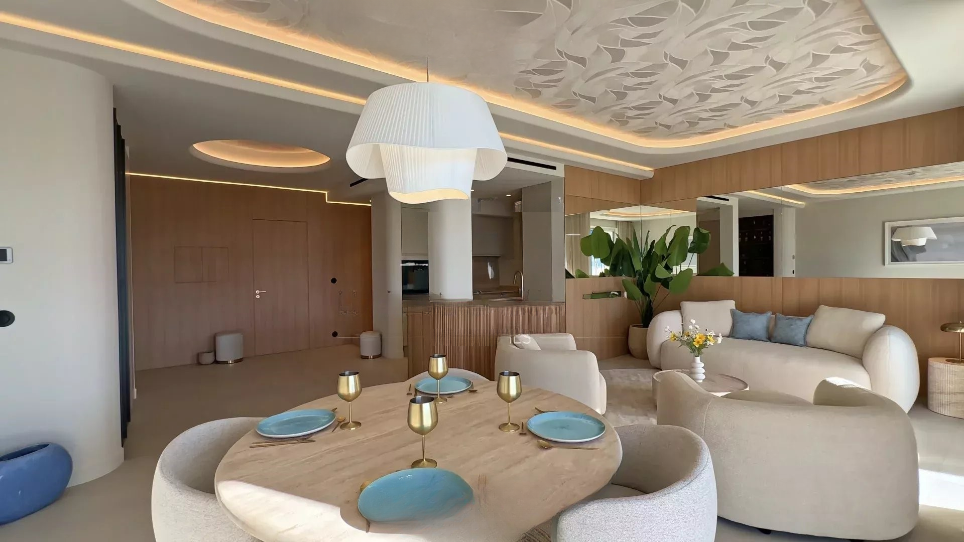 Щедрые объемы, подчеркнутые высотой потолков в 3 метра, создают ощущение пространства и впечатляющего освещения. Жилая комната, залитая светом благодаря южной экспозиции, открывается на террасу площадью 11 м² с видом на море, идеально подходящую для наслаждения лазурным окружением.