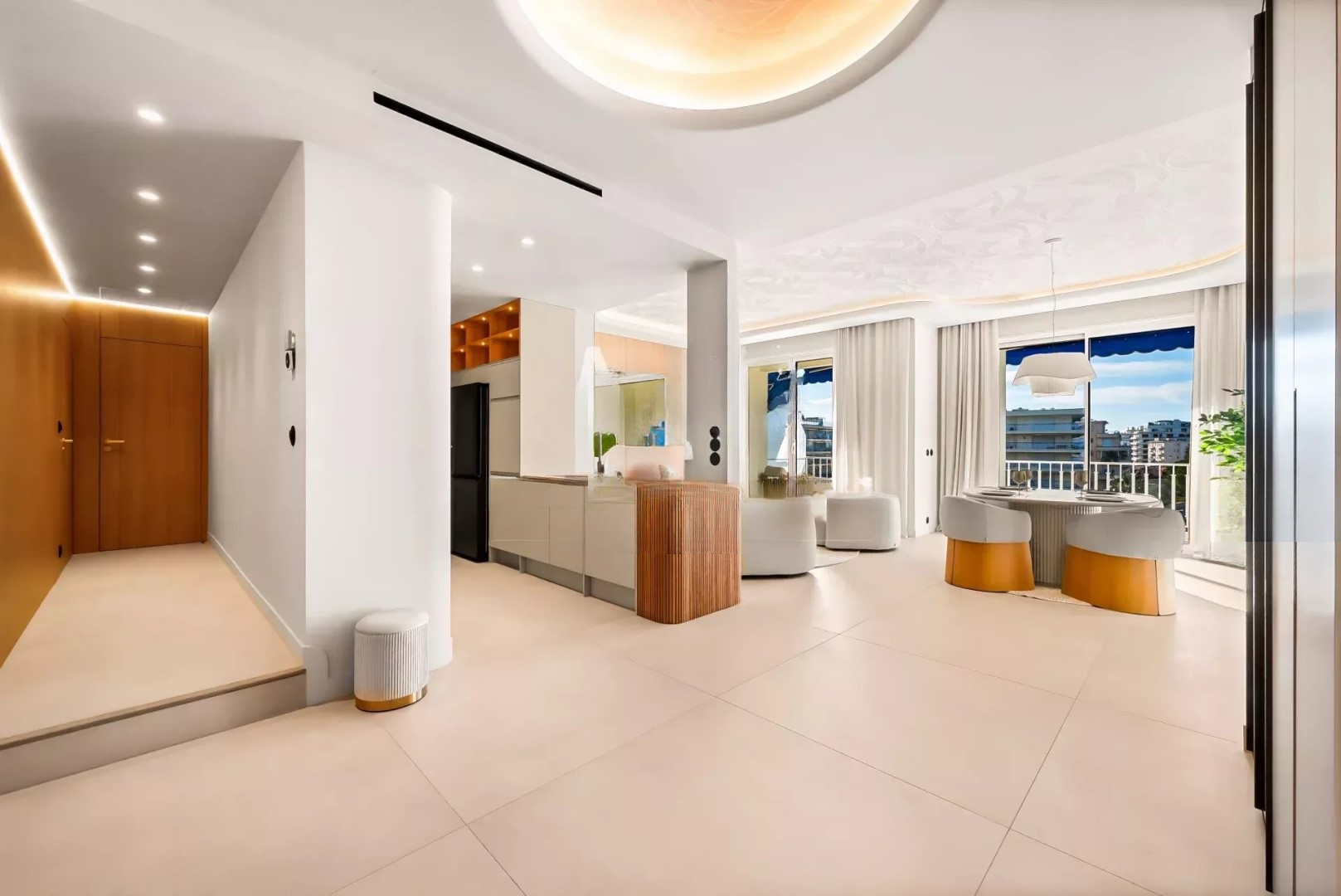 Идеально расположенный на престижном бульваре Круазетт, чуть в стороне перед парком, этот элегантный архитекторский апартамент предлагает редкое для этого знакового района спокойствие и уединение. Площадь по закону Каррез составляет 100,08 м², и он полностью отреставрирован мастерами высшего класса с применением высококачественных материалов.