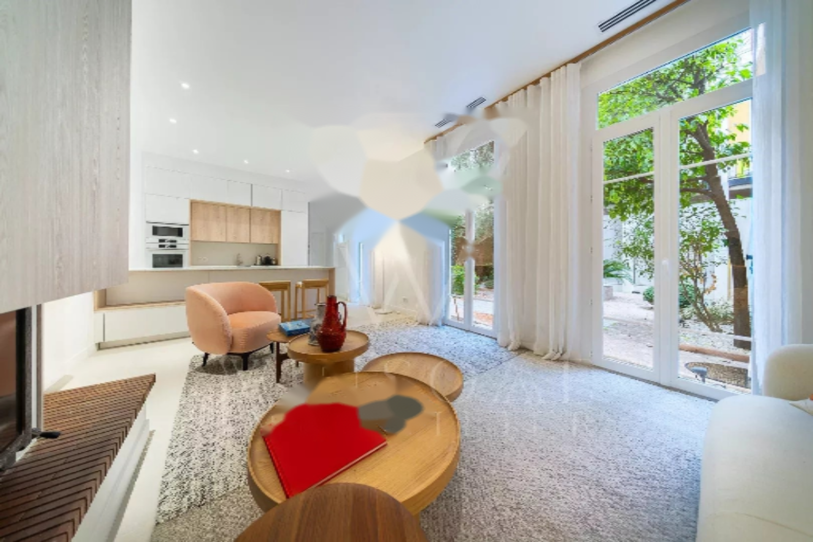 Снаружи: приватная терраса площадью 110 м², расширяющая жилое пространство и обеспечивающая абсолютное спокойствие. Подземный гараж. Эксклюзивный адрес, качественная реконструкция, уникальная недвижимость в центре Канн.