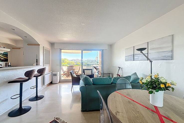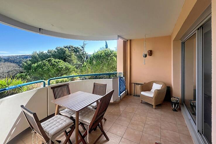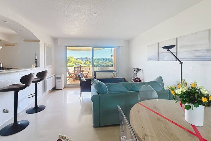 В престижной охраняемой резиденции Domaine des Palmiers с консьержем, бассейном и зонами отдыха (3 мини-поля для гольфа, площадь для петанка, теннисный корт) представлено это двухкомнатное жилье, расположенное в спокойном зеленом окружении.