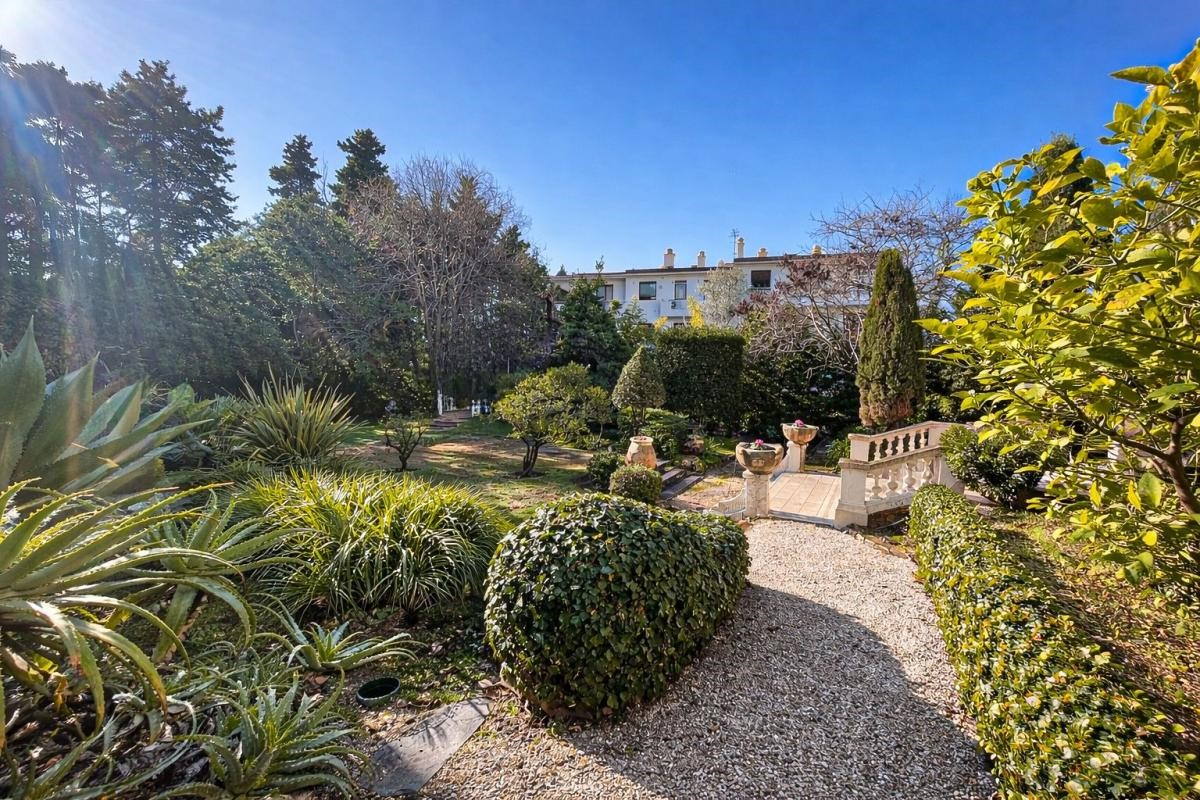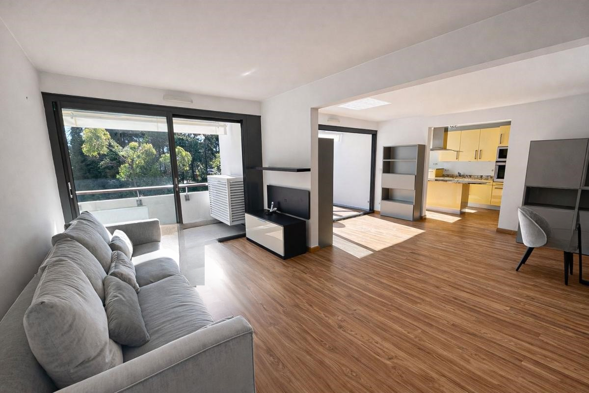 Прекрасную прихожую. Двойную гостиную площадью 45 м², с южной экспозицией, предлагая приятный вид на зелень с выходом на террасу и балкон. Полностью оборудованную и благоустроенную кухню, также открытую на балкон с южной экспозицией. Три спальни, каждая с собственной террасой. Две ванные комнаты. Три туалета. Прачечная.