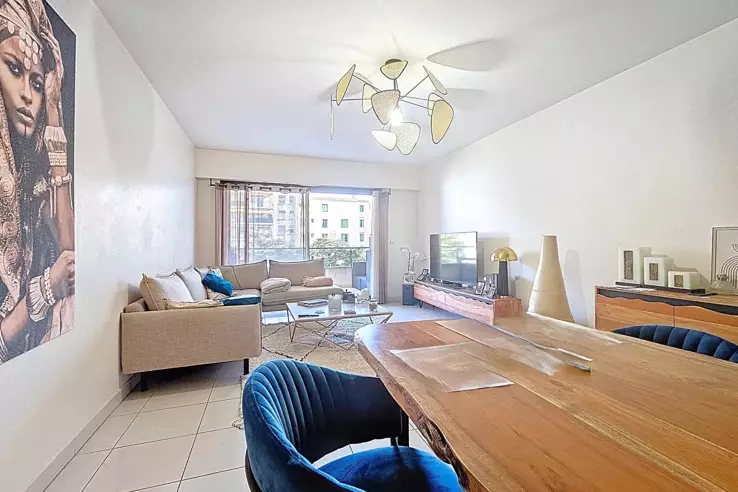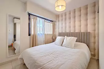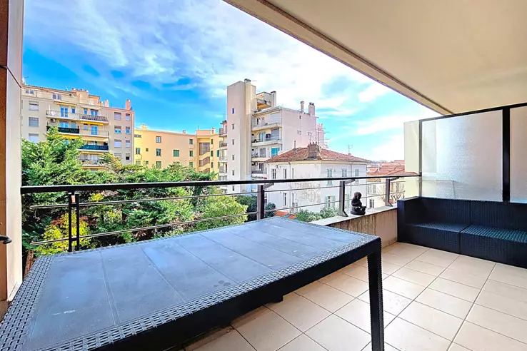 Расположенная менее чем за 10 минут ходьбы от улицы Антиб и Дворца фестивалей, в современном жилом комплексе с консьержем и бассейном, квартира типа 3 комнаты. Включает вход, гостиную с выходом на просторную террасу, оборудованную отдельную кухню, 2 спальни с гардеробами, ванную комнату и отдельный туалет.