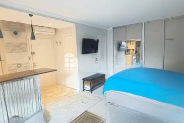 В центре Канн, в престижной резиденции, предлагается к продаже студия площадью 27 м² на высоком этаже. Она расположена в районе LA BANANE, рядом с CARLTON и набережной Круазет. Внутри — гостиная, оборудованная кухня, совмещенная ванная комната с туалетом, коридор. Все полностью отремонтировано и меблировано, имеет кондиционер. ️ Магазины находятся у подножия здания!