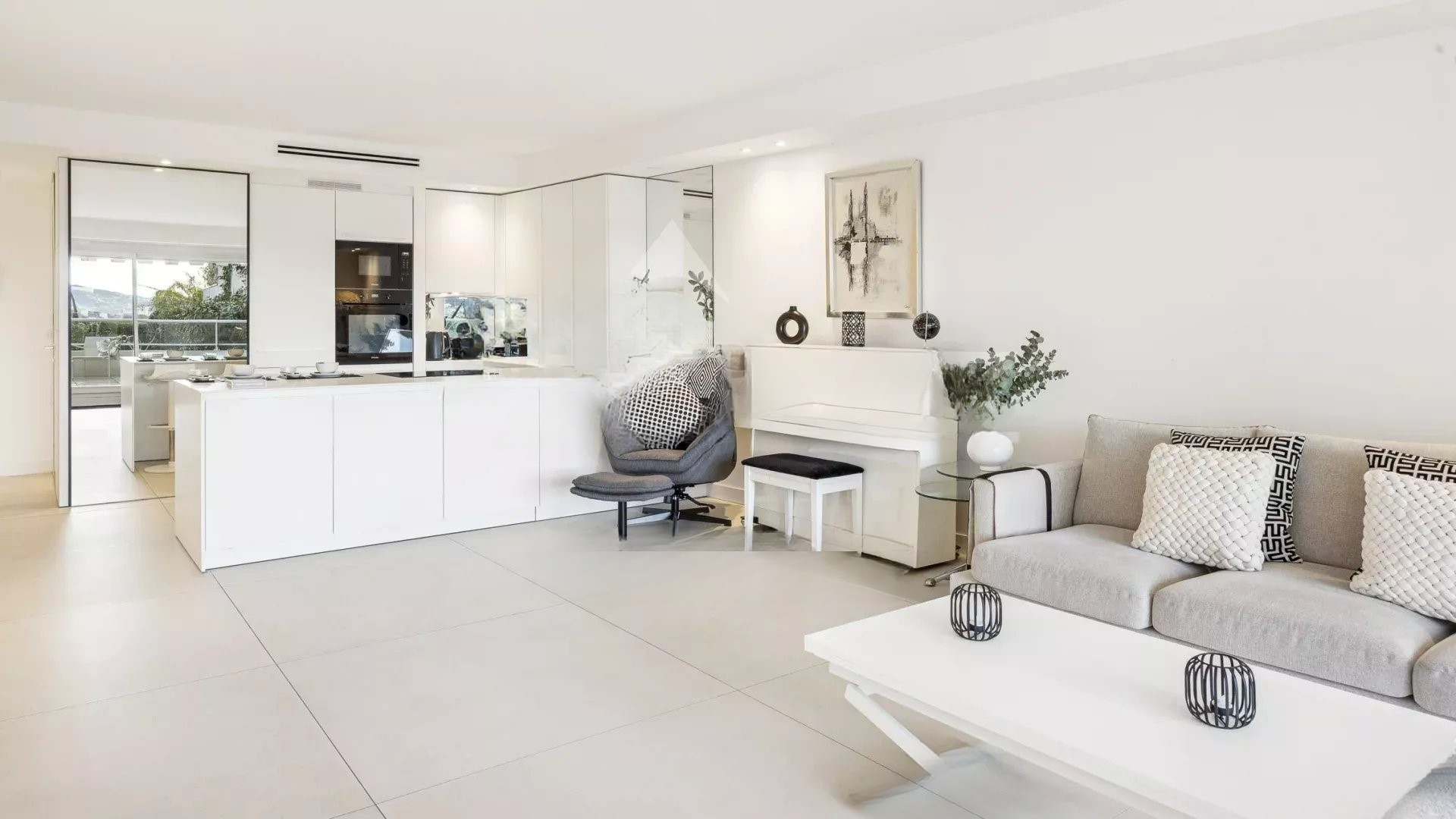 Откройте для себя эту великолепную квартиру площадью 78,90 м², расположенную на первом этаже небольшой уединенной и охраняемой резиденции, всего в двух шагах от магазинов и знаменитой улицы д'Антиб.
