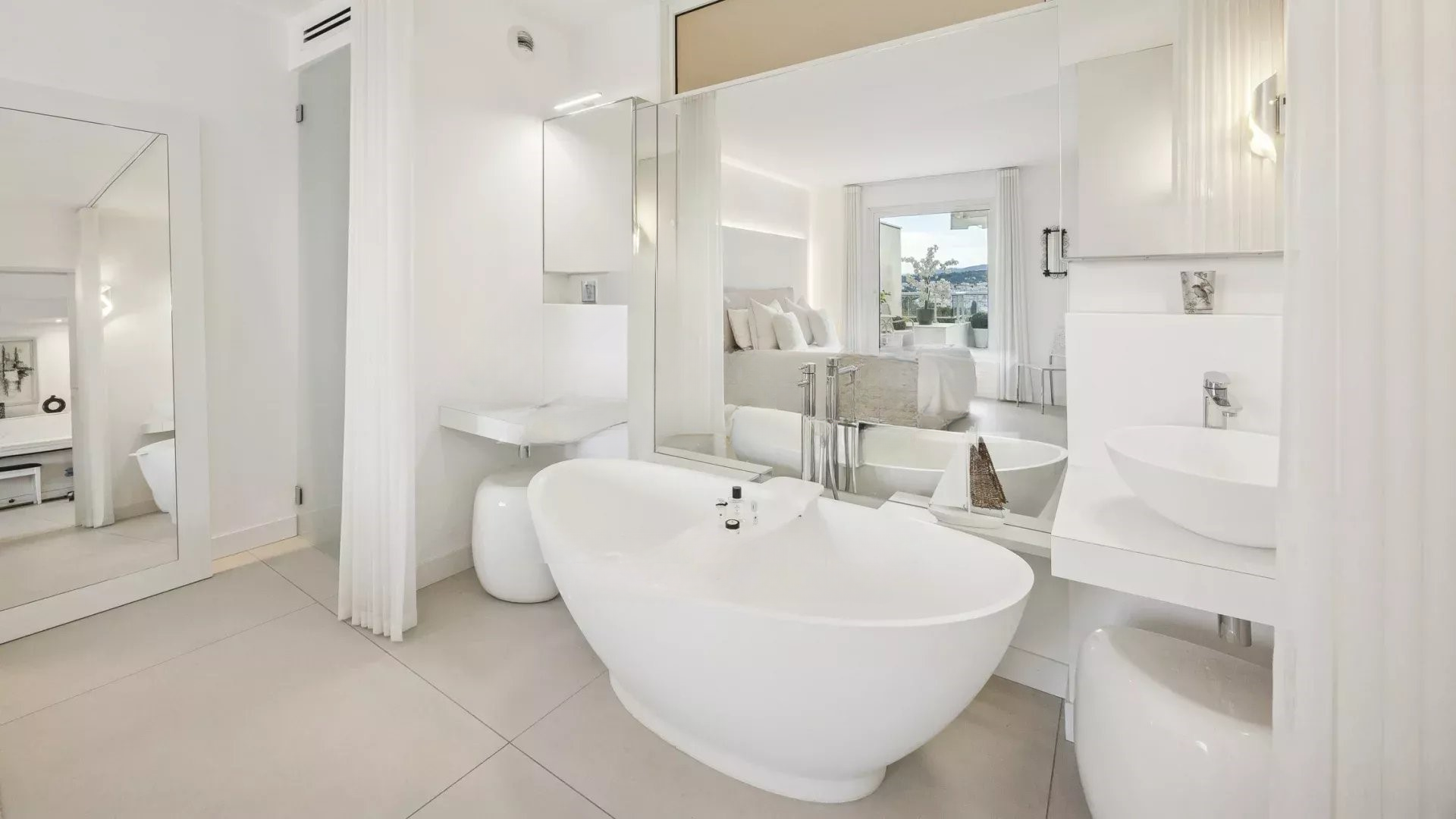 В квартире расположены две просторные спальни, одна из которых — родительская, с собственной ванной комнатой и прямым выходом на террасу. Еще одна ванная комната и два отдельных туалета дополняют этот исключительный объект, созданный для вашего комфорта. ️