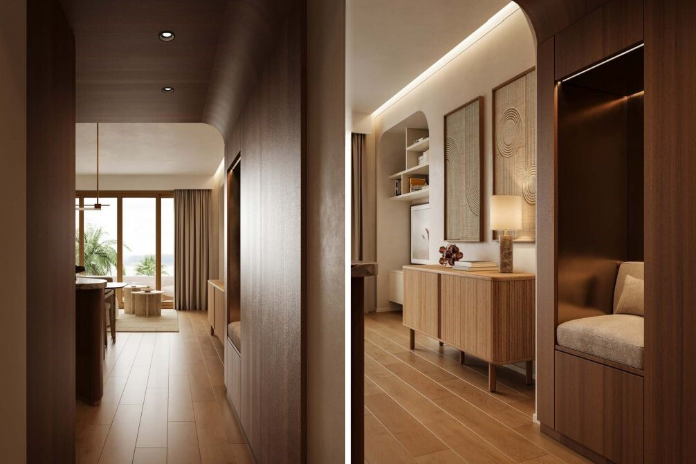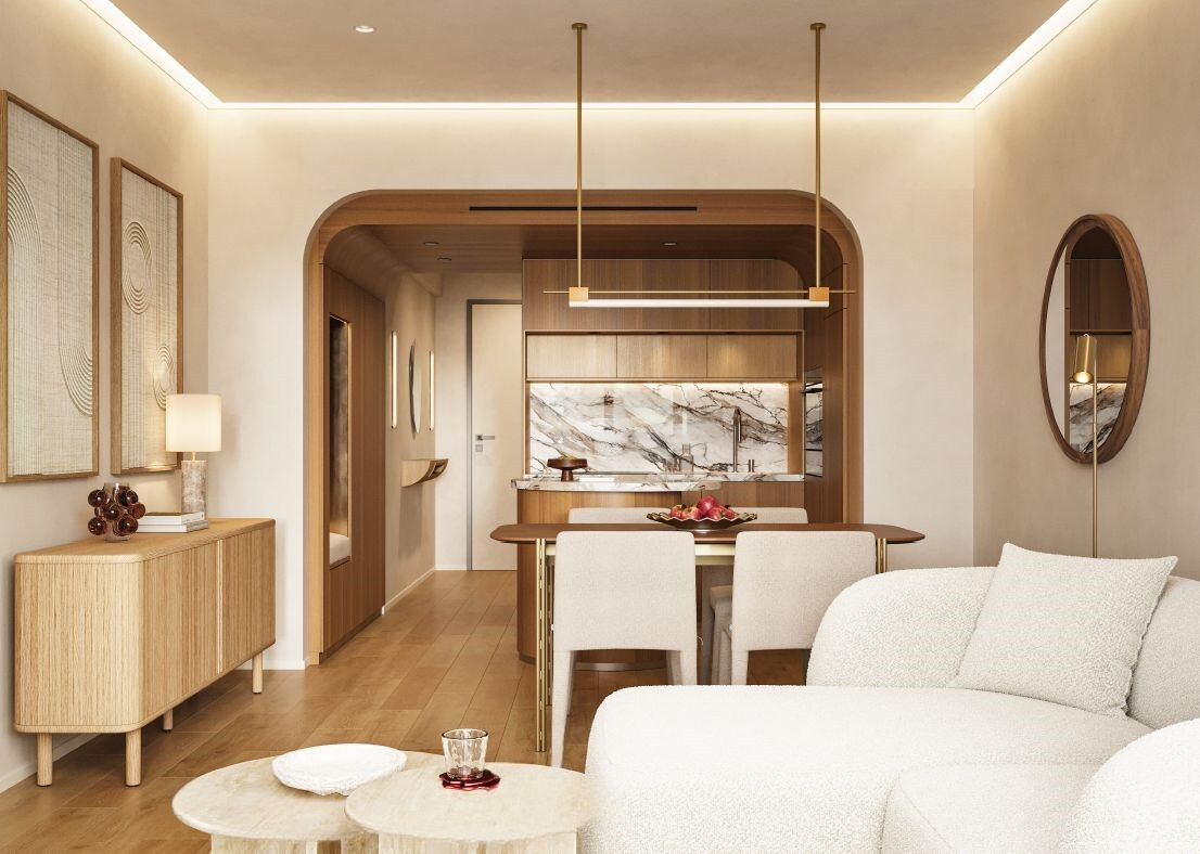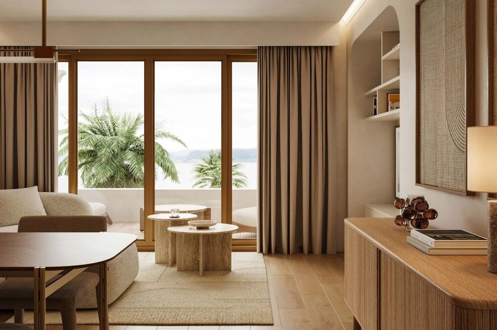 Эти апартаменты воплощают современную элегантность, благородные материалы и высококлассные услуги. На первом уровне вас ждет великолепная жилая зона, наполненная светом, с гостиной и специально спроектированной кухней, переходящей в террасу с видом на море.