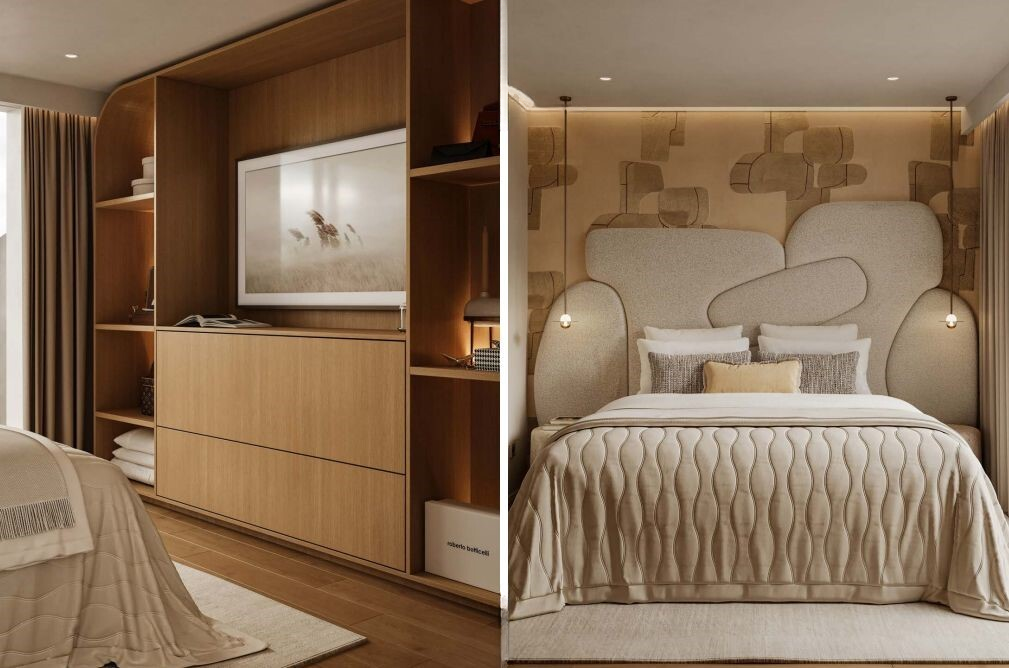 На верхнем этаже располагается главная спальня, создающая уютную и расслабляющую атмосферу, с гардеробной и элегантной ванной комнатой, а также вторая терраса, предлагающая панорамный вид на залив Канн.