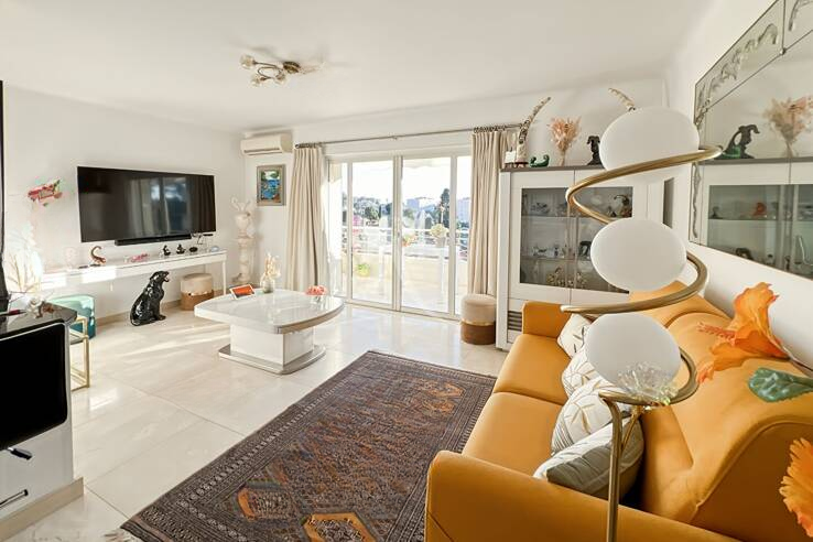 В спокойном и популярном жилом районе Isola Bella откройте для себя эту великолепную квартиру с 2 комнатами и площадью 63 кв. м (ранее из 3-х комнат), с прекрасным видом на море. ☀️ Она наполнена светом благодаря идеальной ориентации на юг. Просторная гостиная открывается на красивую террасу, современная полуоткрытая полностью оборудованная кухня, большая спальня также с выходом на террасу, очень большая гардеробная и ванная комната с ванной и душем с хамамом.