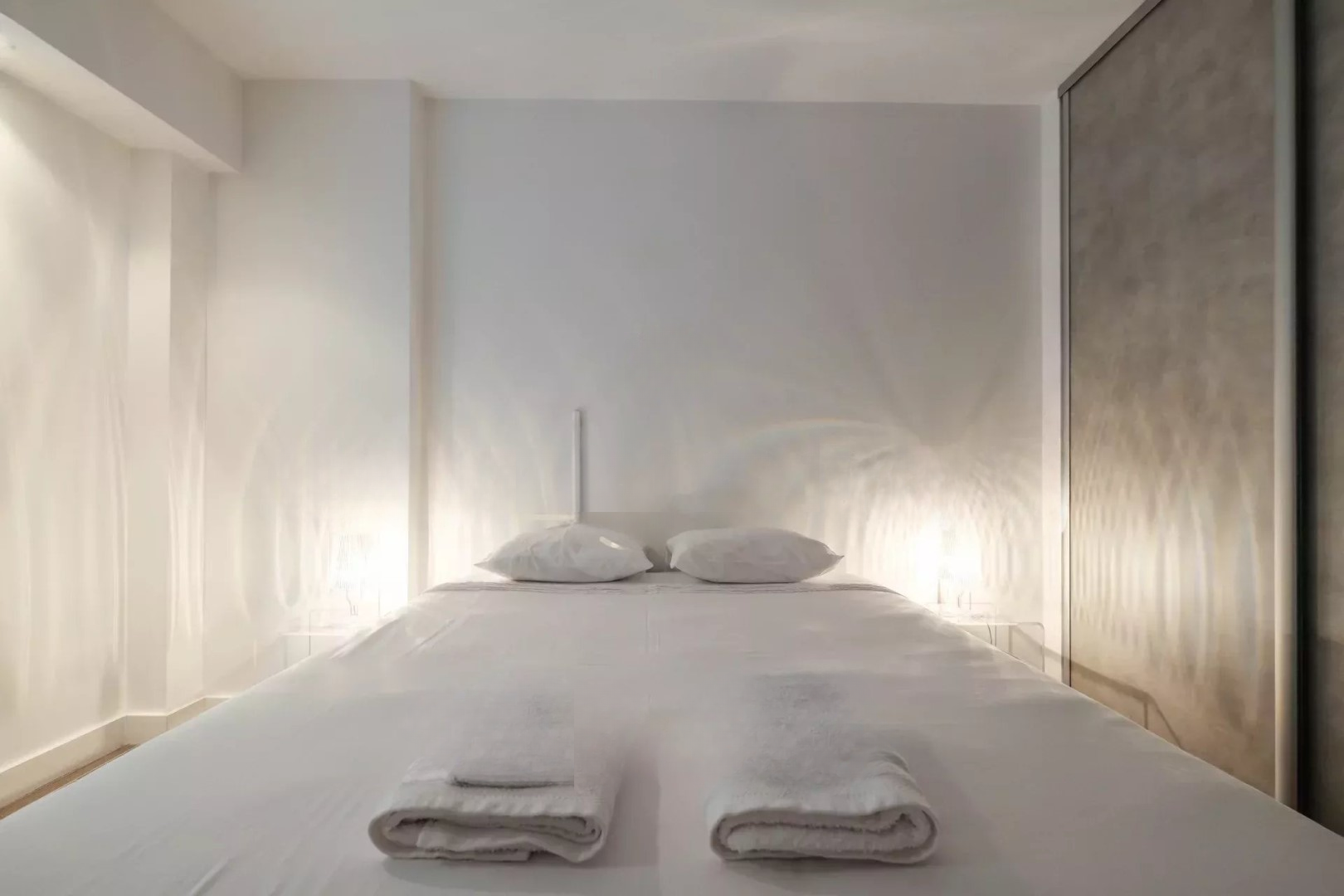 Спальная зона, идеально распределенная, включает две спальни с встроенными шкафами, обе с выходом на восточную террасу. Душевая комната, а также отдельный туалет завершают планировку этой квартиры.