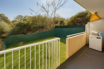 В закрытой и охраняемой резиденции, в непосредственной близости от моря, находится эта красивая 2-комнатная квартира площадью 42 м², расположенная на первом этаже с садом, в абсолютной тишине.