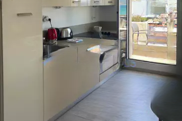 Его уникальное расположение обеспечивает невероятный вид на море! Эта двухкомнатная квартира площадью около 48 м² на первой линии моря была недавно полностью отремонтирована. Она находится в небольшом кондоминиуме из всего лишь трех жилых единиц. На 2-м и последнем этаже эта квартира с видом на море предлагает: