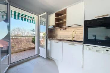 В районе Александр III, на предпоследнем этаже ухоженного здания. Это 2-комнатная квартира находится в приятной локации. Она состоит из прихожей, гостиной, открытой на восточный балкон с приятным видом на море, отдельной кухни, которую можно объединить с гостиной с доступом к тому же балкону, спальни, ванной комнаты и множества шкафов.