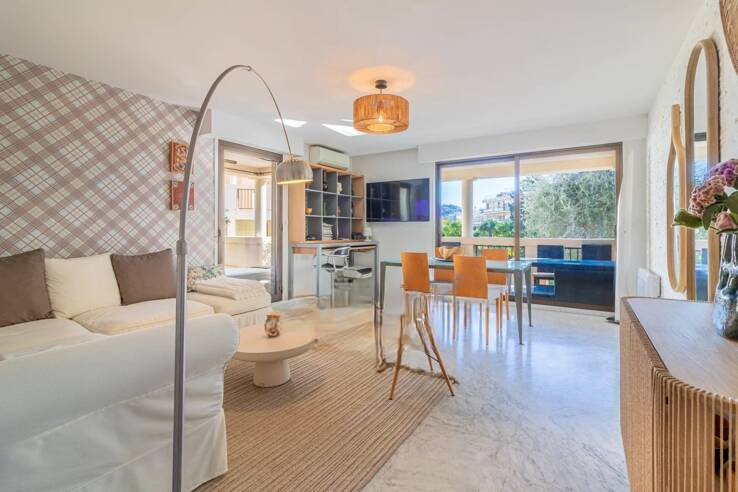 Этот прекрасный апартамент площадью 67 м² расположен в сердце популярного района Канны Petit Juas в престижной, охраняемой резиденции, окружённой зеленью, с садом и бассейном. Его отличает яркость и простор.