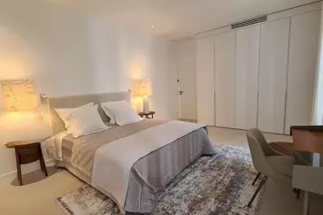На верхнем этаже две просторные спальни, каждая со своим душем и туалетом. Все спальни оборудованы большими гардеробами, присутствует кондиционер и система сигнализации. Отличный арендный потенциал, идеально подходит для сезонного проживания и конференций. Гараж доступен за отдельную плату поблизости. Редкая возможность в центре города.