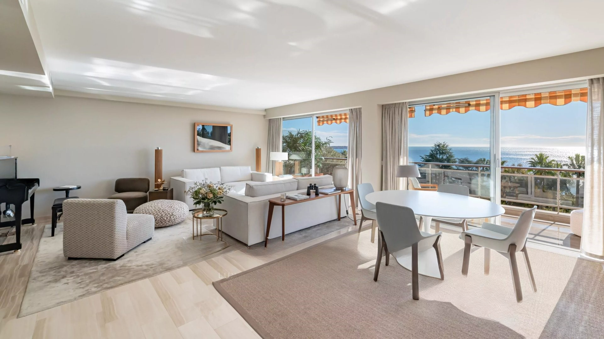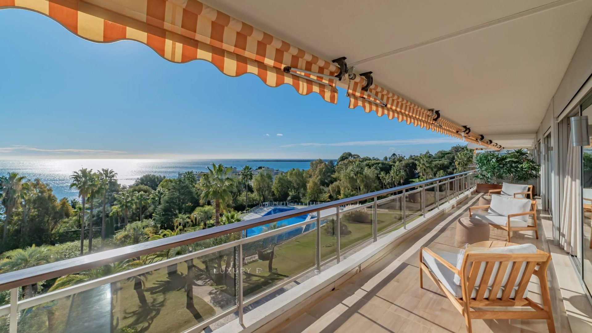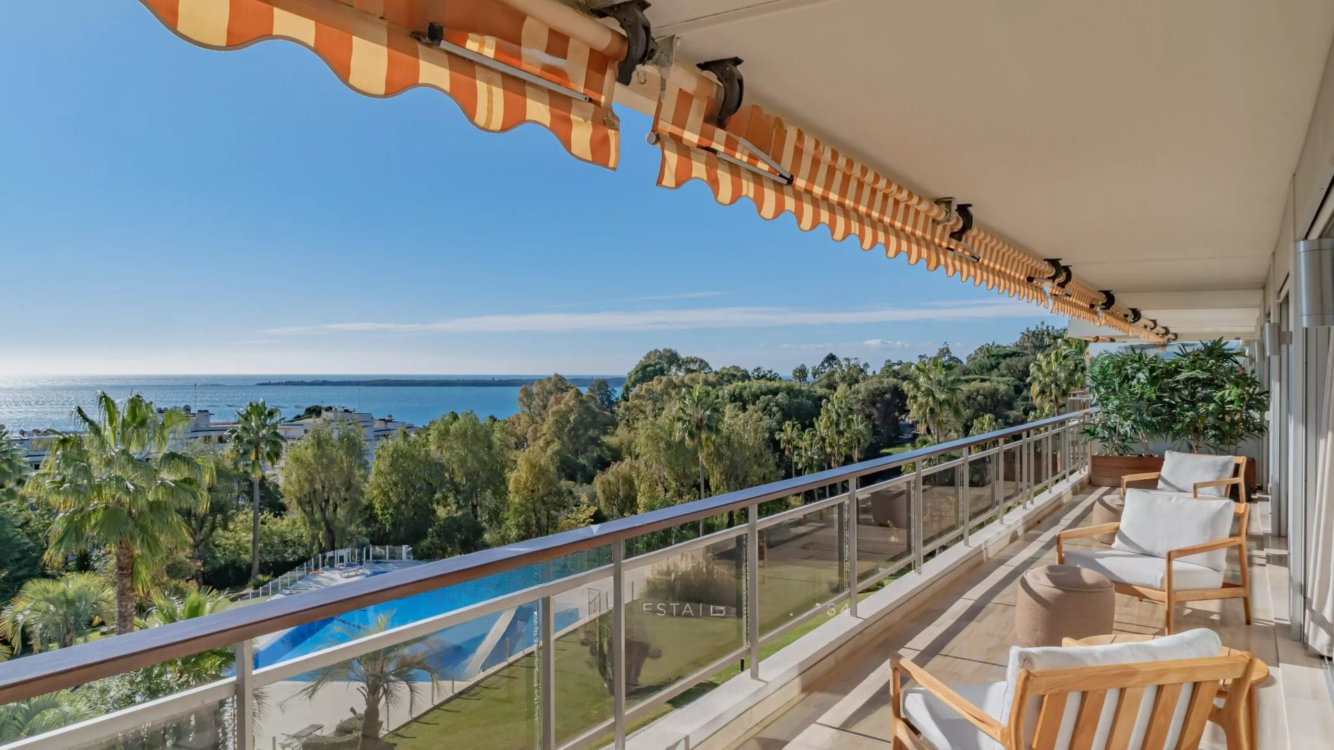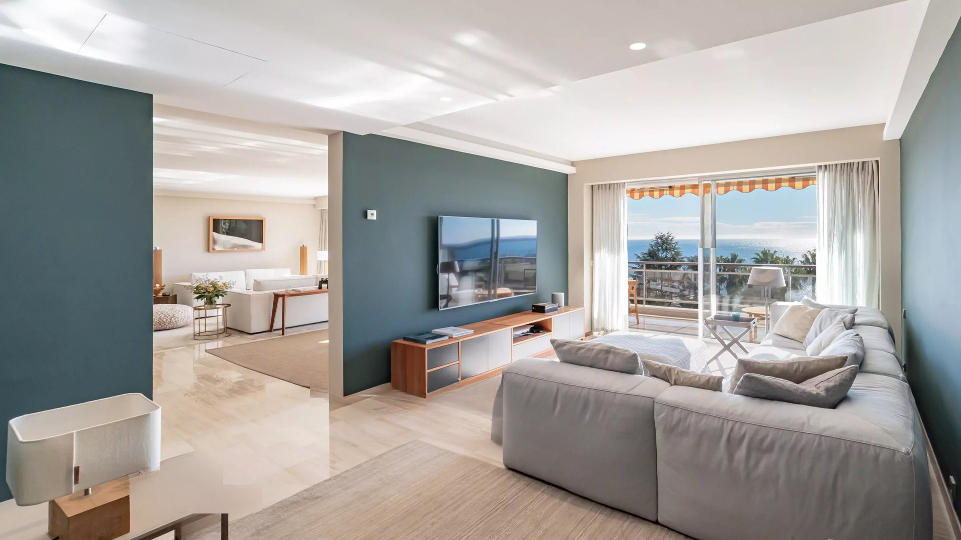 Квартира состоит из гостиной и салона, главной спальни с ванной комнатой и гардеробной, всё это выходит на террасу площадью 32 м² с панорамным видом на море и острова Лерин, оборудованной кухни, двух других спален с каждой своей ванной комнатой и прачечной.
