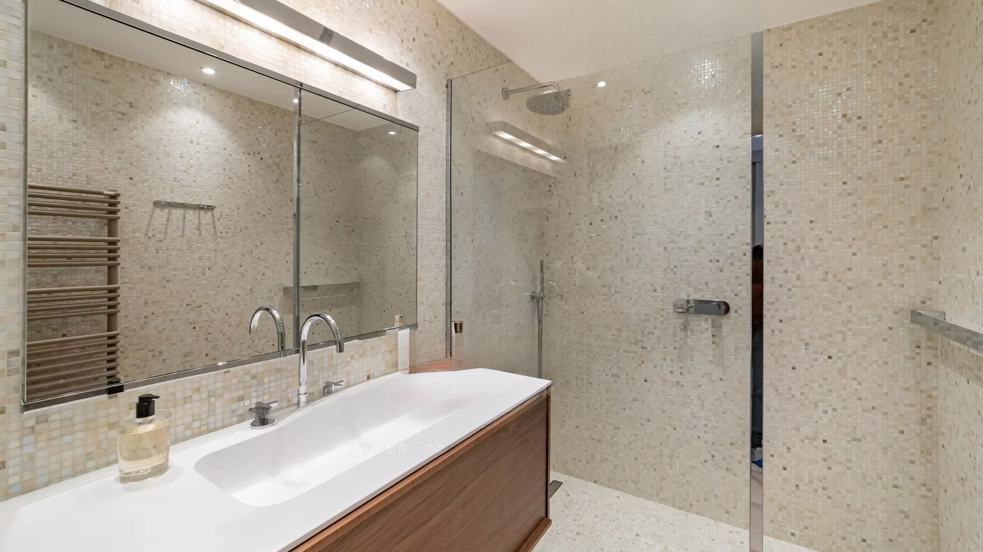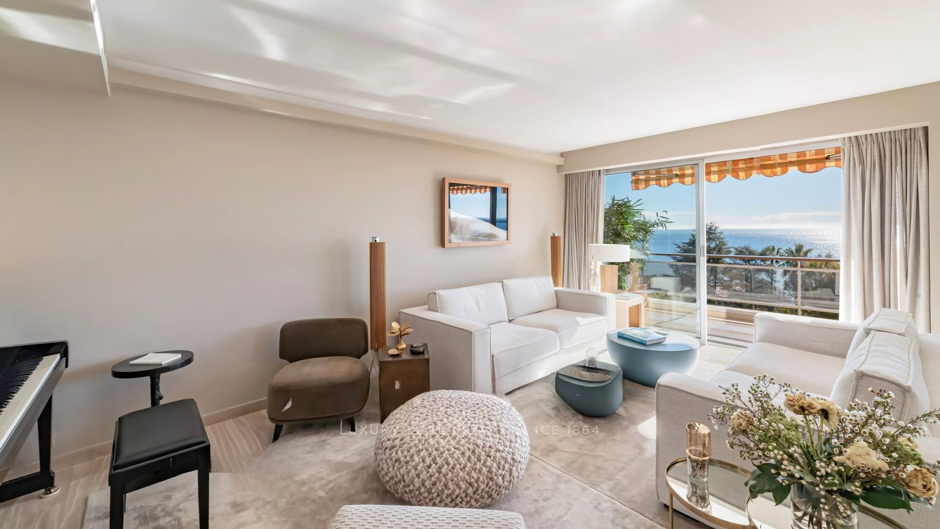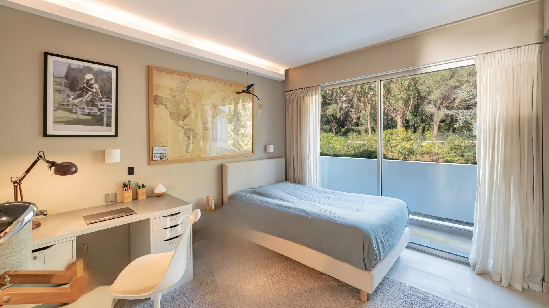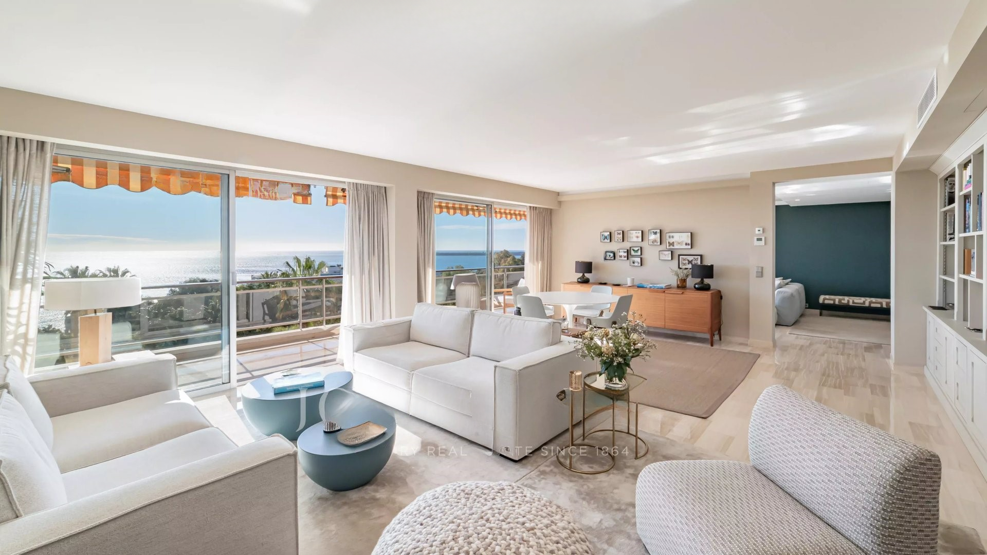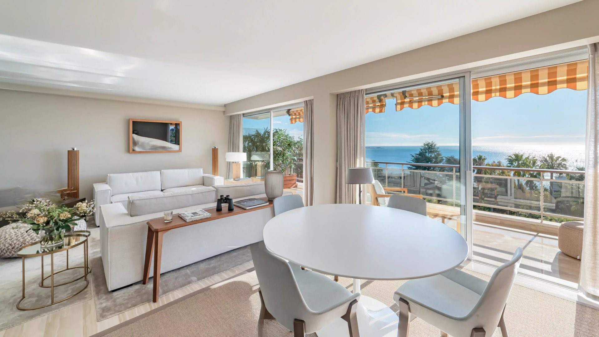 Квартира состоит из гостиной и салона, главной спальни с ванной комнатой и гардеробной, всё это выходит на террасу площадью 32 м² с панорамным видом на море и острова Лерин, оборудованной кухни, двух других спален с каждой своей ванной комнатой и прачечной.
