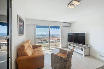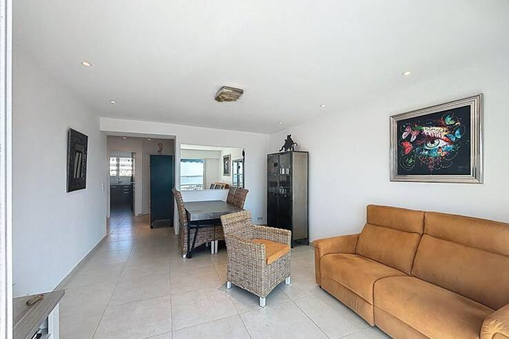 Расположенный на предпоследнем этаже резиденции с консьержем, этот недавно отремонтированный апартамент привлекает своей яркостью и красивой террасой с приятным видом на море.