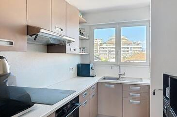 Он включает в себя прихожую, светлую гостиную, которая открывается на террасу, две большие спальни, отдельную кухню, а также очень просторную ванную комнату. Две кладовые дополняют это имущество.