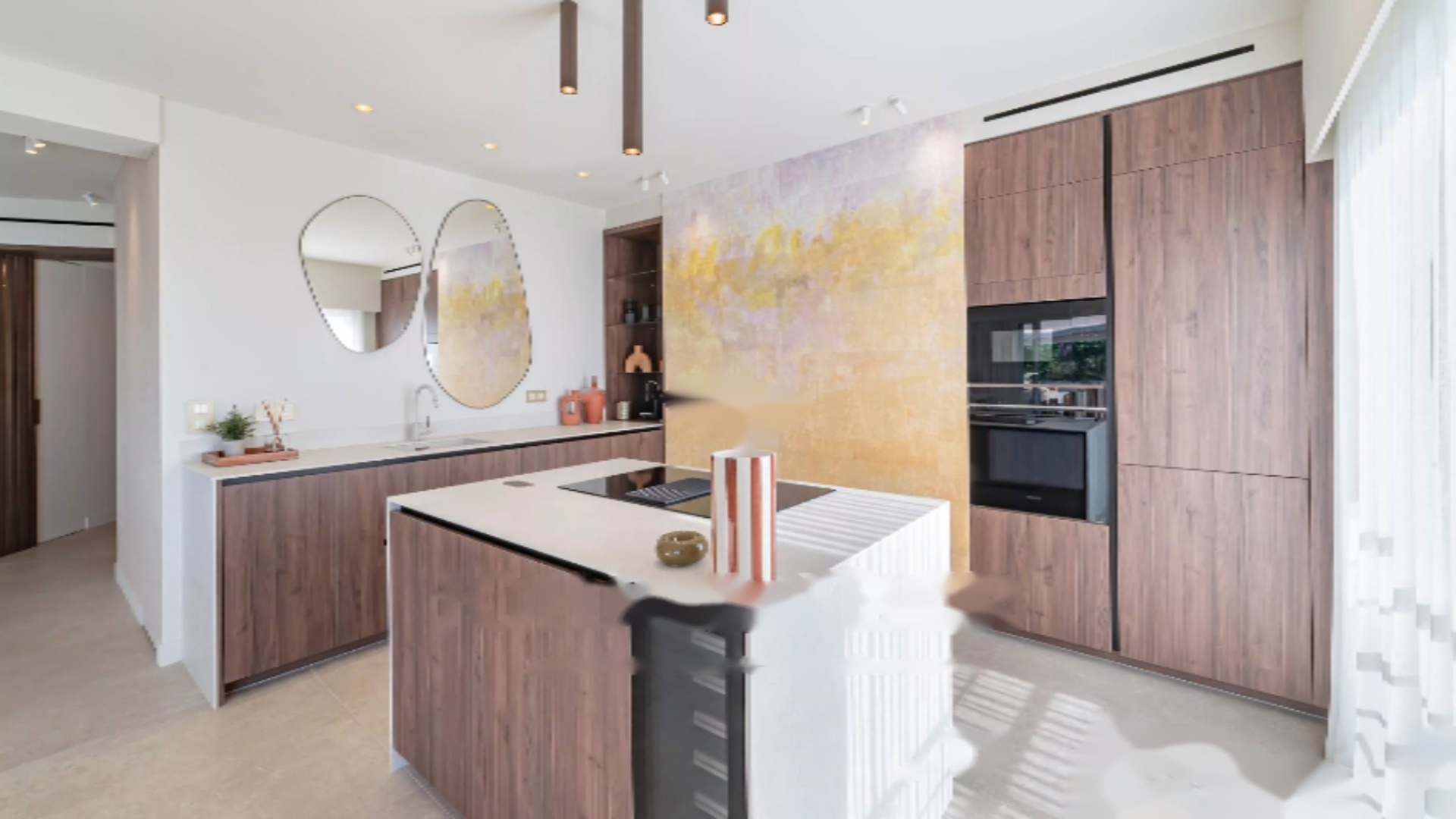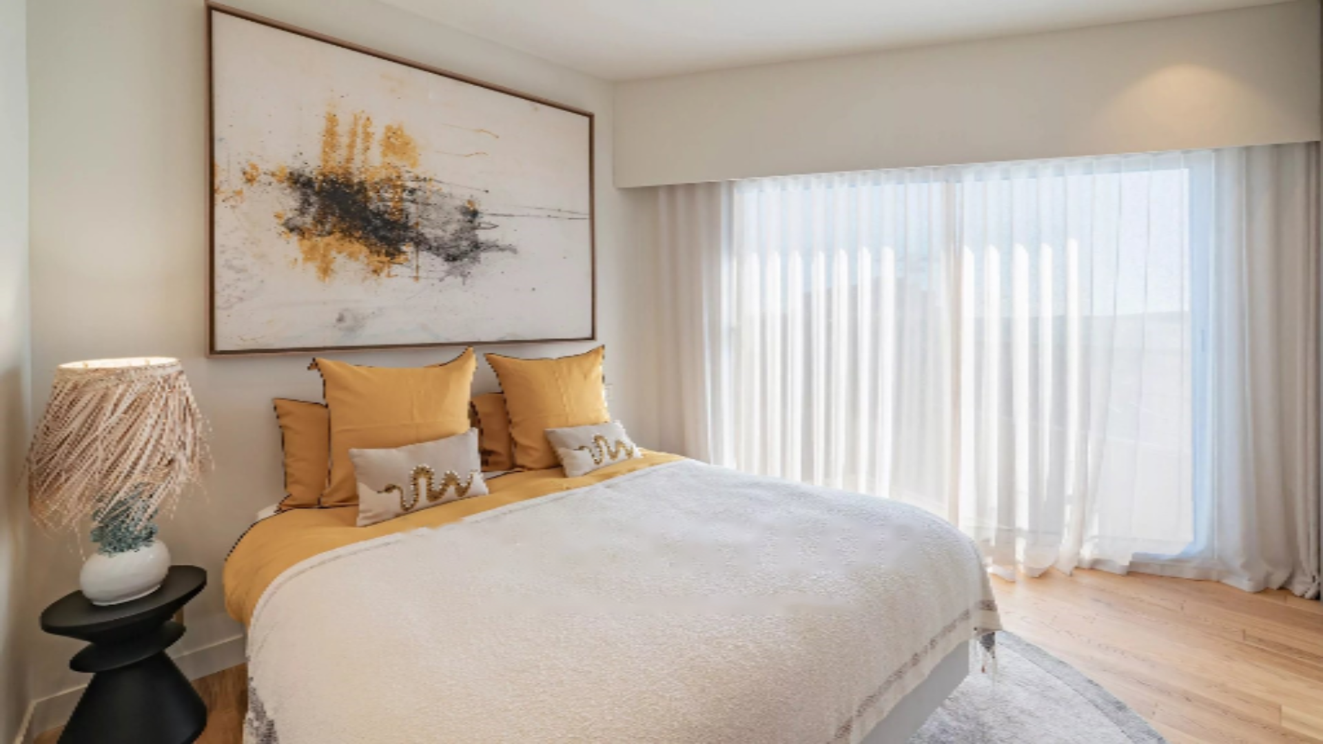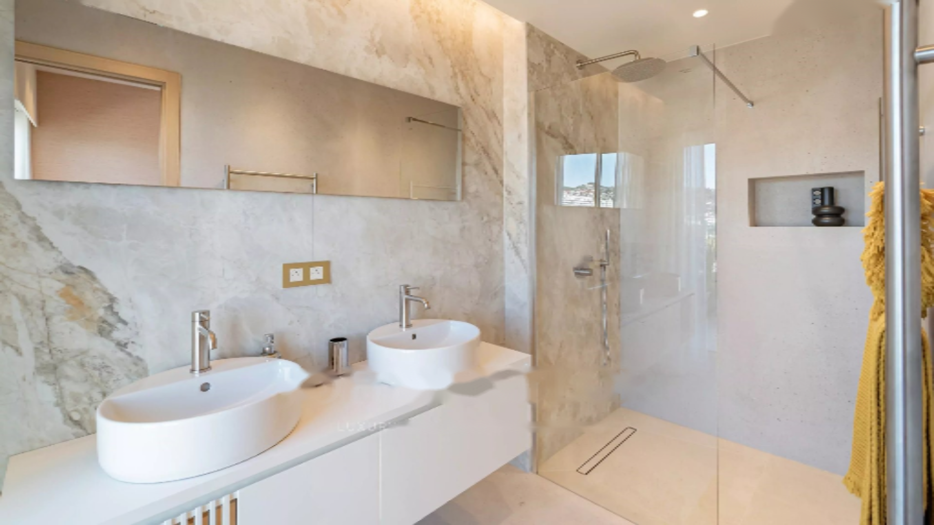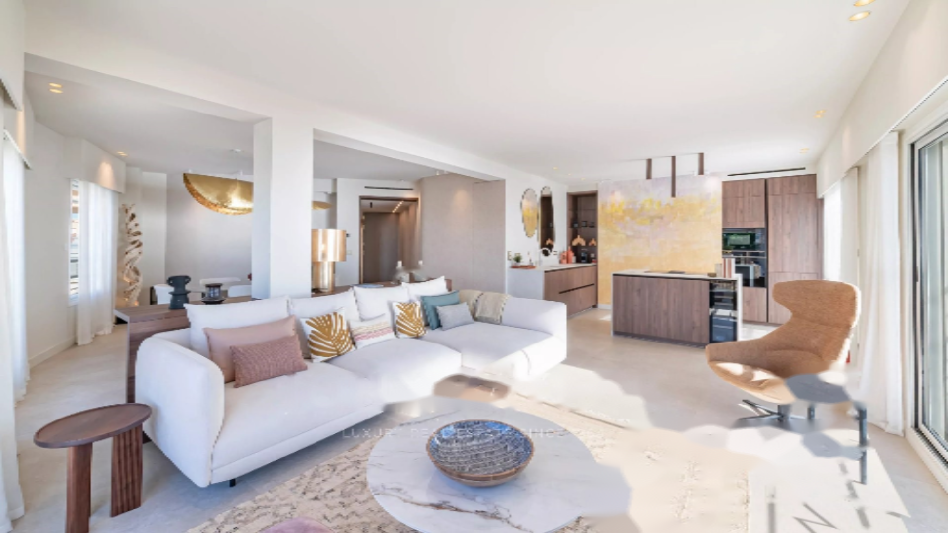 Площадью около 134 м², он был полностью отремонтирован с использованием качественных материалов. В нем есть: вход, двойная гостиная/столовая, полностью оборудованная открытая кухня, все с выходом на большую террасу площадью около 110 м², ориентированную на юго-запад, гостевой туалет, основная спальня с гардеробной и собственной душевой комнатой с приватной террасой, предлагающей красивый вид на Порт и Калифорнию, ванная комната, спальня с ванной комнатой и третья спальня, каждая из которых имеет приватную террасу.