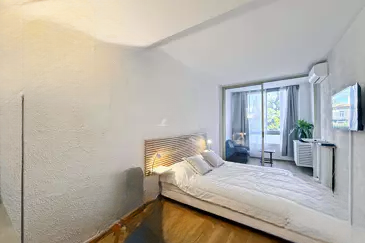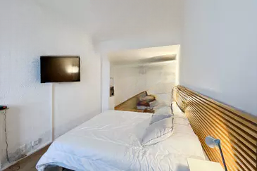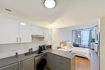 Расположен в идеальном месте для аренды на время конгрессов, студия недавно обновлена. Ванная комната с туалетом, гардероб, меблированная и оборудованная кухня: холодильник, вытяжка, варочная панель, стиральная машина, кровать 160, телевизор, стол и стулья.
