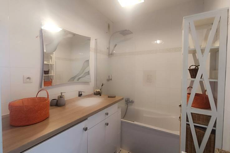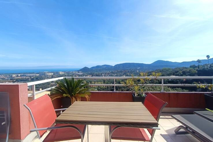 Это предложение от Orion Immobilier Mandelieu предоставляет двухкомнатную квартиру на последнем этаже трехэтажного жилого здания, которая отличается ярким оформлением благодаря южной экспозиции. Наслаждайтесь панорамным видом на море и горы с террасы. Внутренние помещения находятся в хорошем состоянии после косметического ремонта, включая оборудованную кухню, которая соединена с светлой гостиной, спальню с шкафом, ванную комнату и отдельный туалет. Квартира обеспечивает индивидуальное отопление с реверсивным кондиционером.