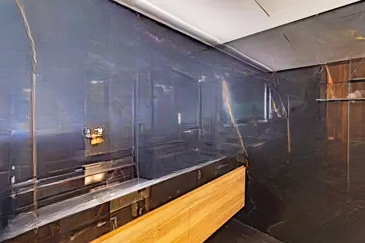 Объект располагает очень красивой душевой комнатой, оборудованной двумя раковинами, а также большой кухней, полностью оборудованной материалами и техникой высокого класса.