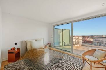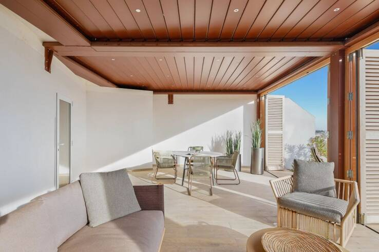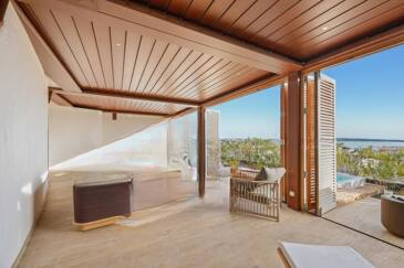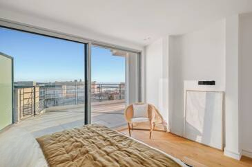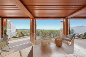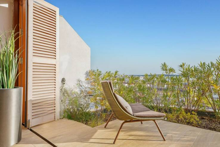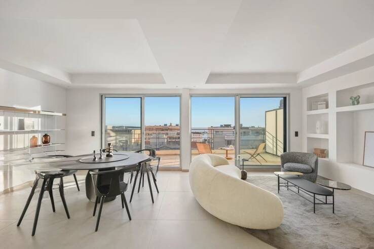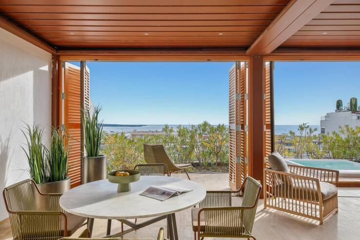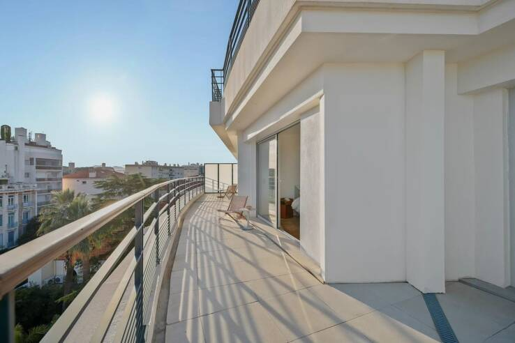 ✨ Этот просторный апартамент с 3/4 комнатами площадью 117 кв. м на последнем этаже был изящно отремонтирован с использованием качественных материалов. Он состоит из холла, который ведет в большой двойной салон с красивой оборудованной открытой кухней. Все это выходит на длинную и широкую террасу, полностью освещенную южным солнцем, с видом из всех основных комнат, включая 2 красивые спальни с санузлами, прачечную и гостевой туалет. По частной лестнице возможен доступ к великолепной крыше с панорамным видом на море — от островов Лерина до Сюке, с частично крытой биоклиматической перголой для слишком солнечных дней, которая может быть полностью закрыта, — а также солнечной зоны около джакузи и завораживающего вида на залив Канн.