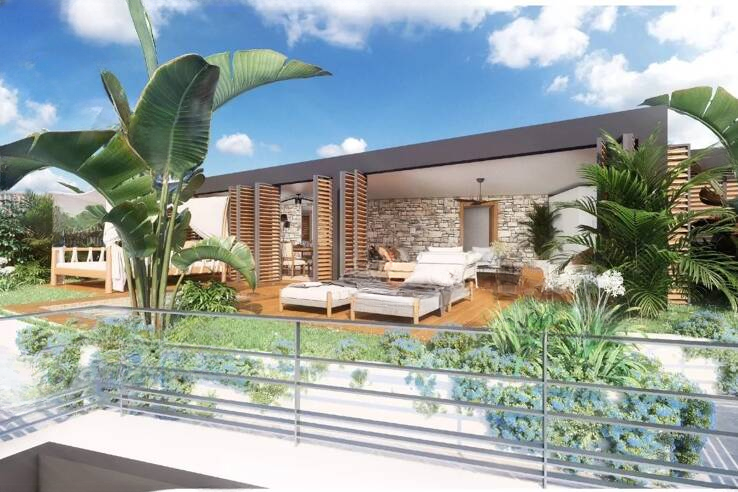 Все предусмотрено для установки летней кухни и туалета в будущем. В стоимость также входит предоставление двух парковочных мест в подвале, в зоне, зарезервированной для верхнего этажа. Уникальное предложение в Каннах!