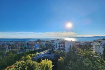 С момента входа, взор захватывает исключительный вид. Благодаря доминирующему положению, без соседей напротив, панорама простирается от островов Лерин до массива Эстерель. Повседневное зрелище, которым можно насладиться как из гостиной, так и из вашей спальни.