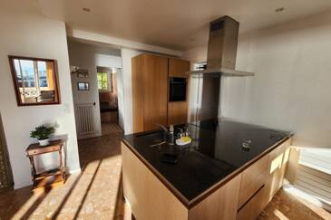При площади в 100 м², этот четырехкомнатный объект сохранил очарование старины (высокие потолки, камин), при этом предлагая современные удобства (полная система кондиционирования, DPE класса C). Жилая зона организована вокруг просторной гостиной площадью 40 м² с американской кухней, залитой светом благодаря двойной ориентации на юг и запад. Дополнительно предусмотрено пространство для стирки.