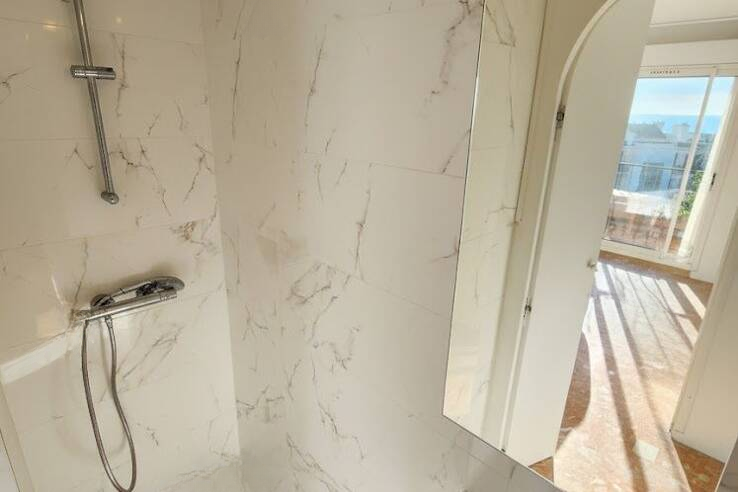 Апартаменты включают три спальни, все оснащены шкафами, две из которых предлагают очень просторные размеры 15 м² каждая. Планировка включает в себя: главную спальню с собственным балконом и видом на море с пробуждением; две другие большие комнаты с высоким потенциалом развития (имеются подводки для создания отдельных душевых); ванную комнату и два туалета (один из них независимый).