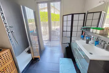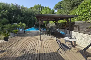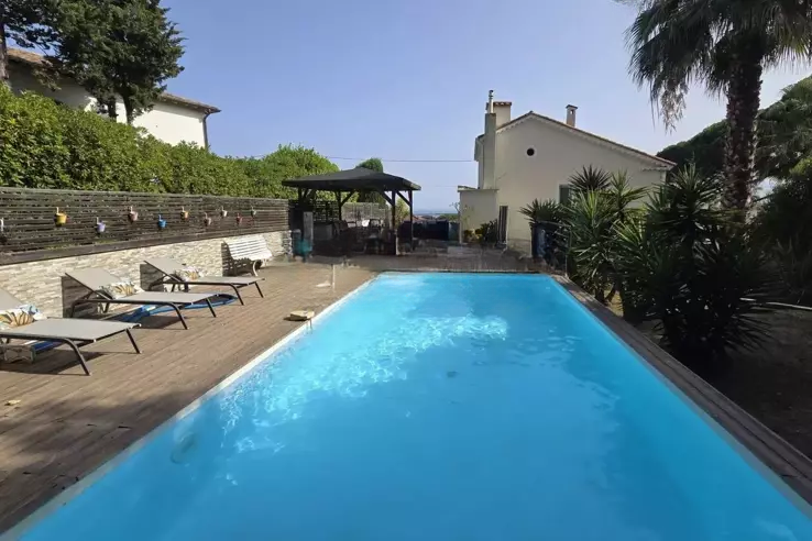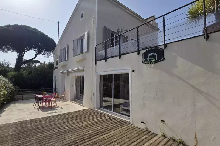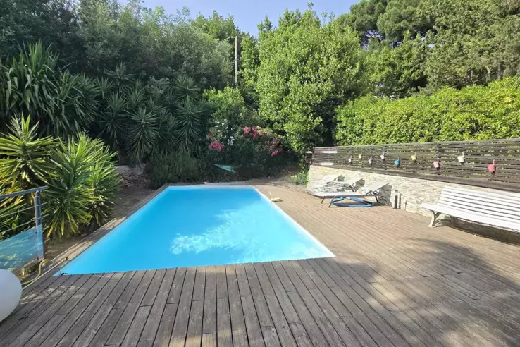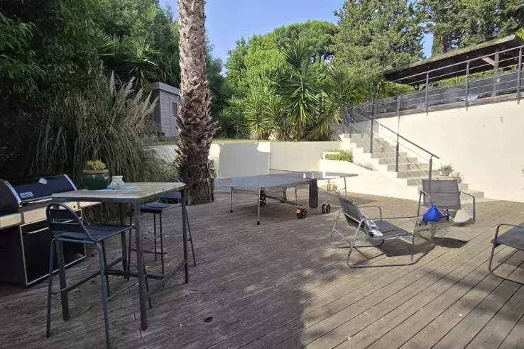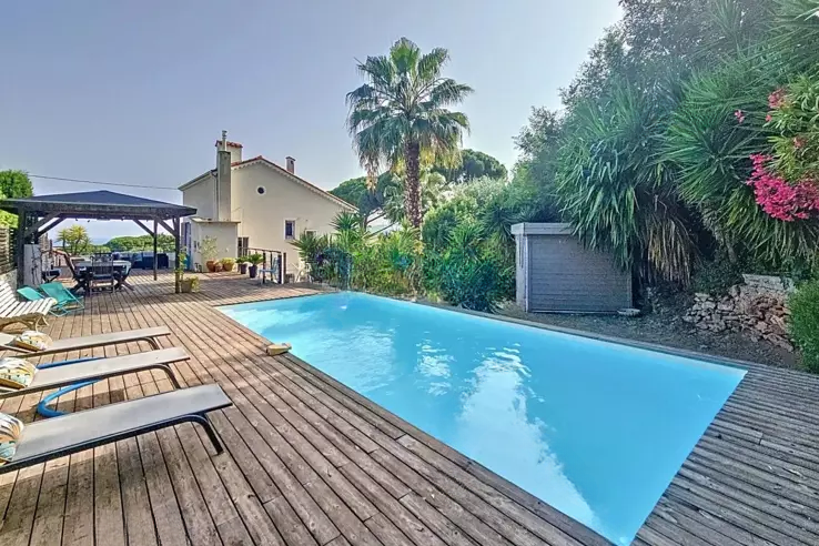 Канны La Bocca (на границе с Каннами), рядом с лесом Croix des Gardes, дом с пятью комнатами площадью 112 кв. м, ориентированный на юг с видом на море, на участке площадью 1,327 кв. м с зелеными насаждениями, бассейном и без соседей.