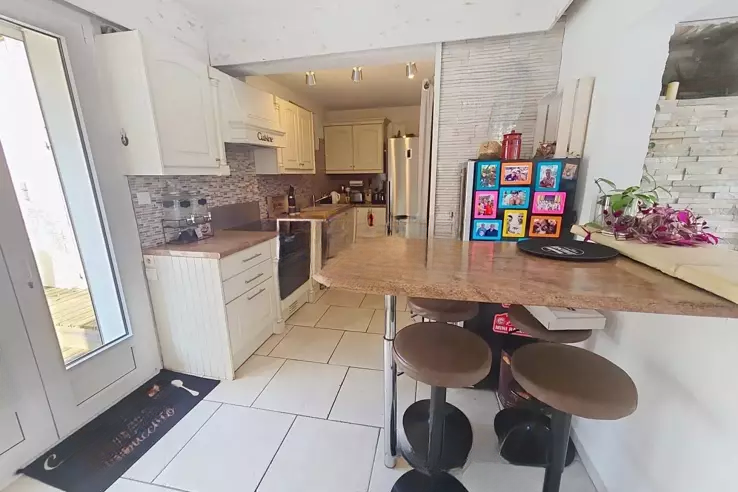 Дом находится в 500 метрах от вокзала, в пешей доступности от автобусов и школ, и в 1 км от магазинов.