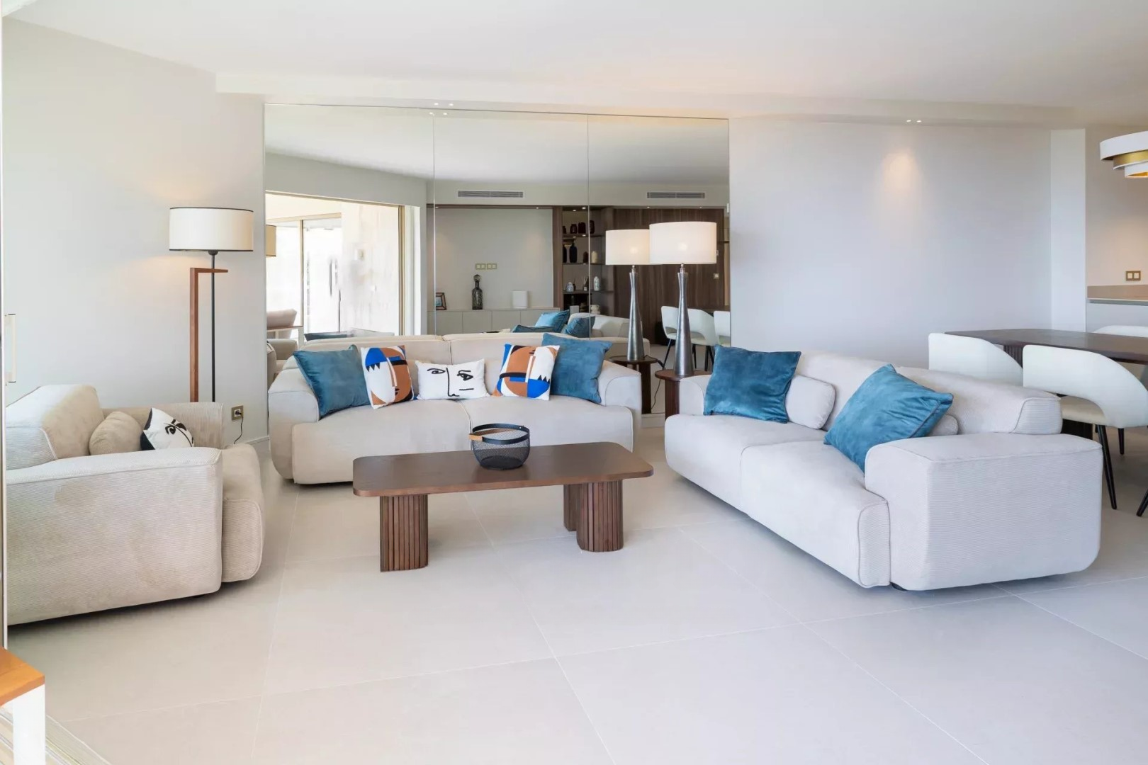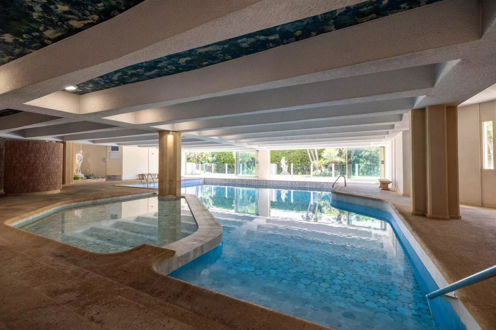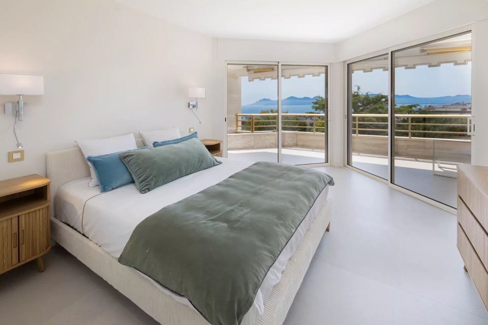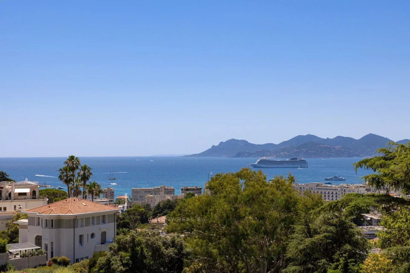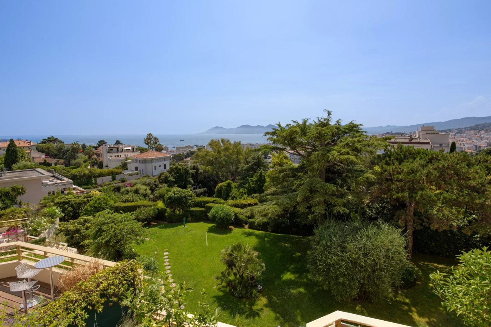 В престижной собственности с бассейном и садом находится этот очень красивый апартамент площадью около 130 кв. м, с панорамным видом на море до Пальм-Бич и Эстерель.