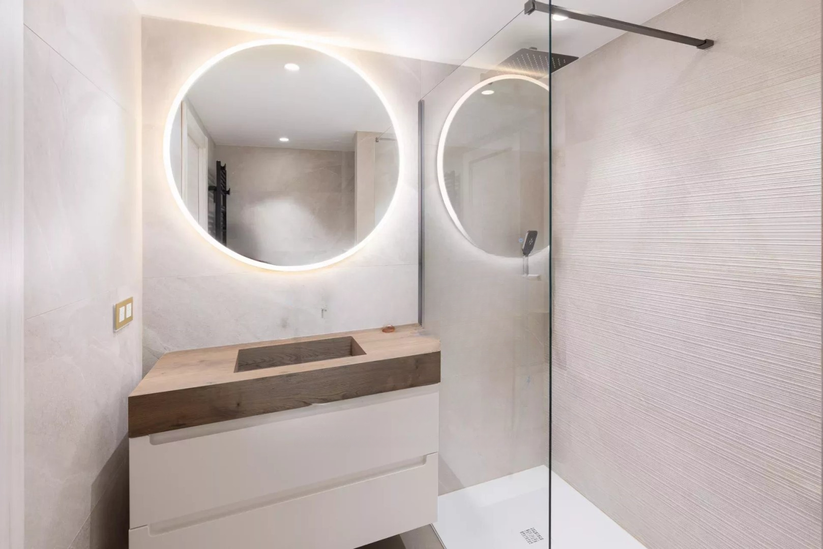 Имущество включает в себя входную зону, ведущую в большую гостиную, угловую террасу площадью 22 кв. м, полностью оборудованную открытую кухню, три великолепные комнаты с собственными ванными, рабочее пространство, прачечную, туалеты и гардеробы.