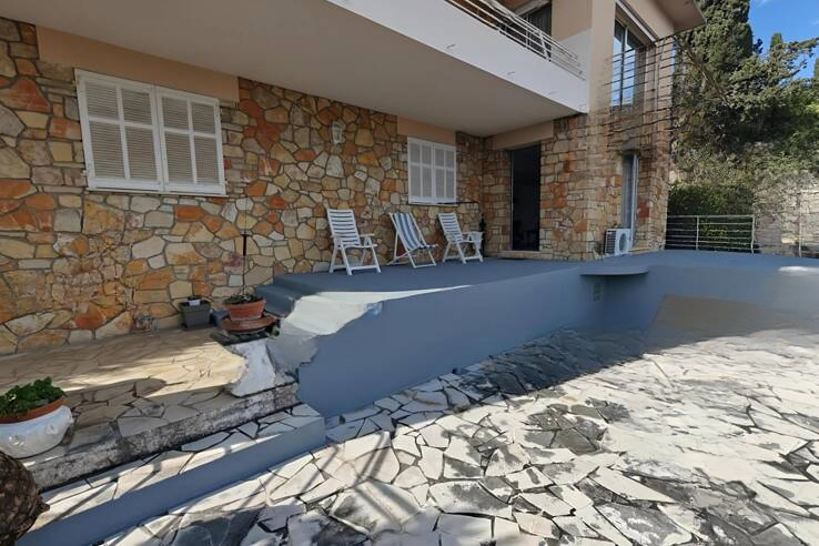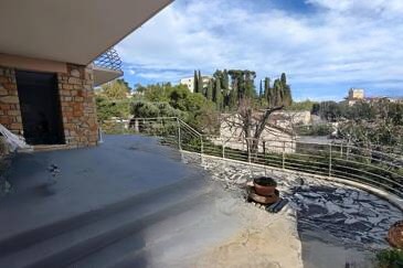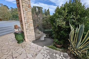 Также имеется большая дополнительная терраса на запад, с кухонной стороны, откуда можно подняться на крышу дома по винтовой лестнице, чтобы насладиться невероятным видом на море! Создание солярия на крыше возможно. Есть возможность парковки нескольких автомобилей на территории собственности.