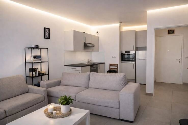 В самом сердце Канн, в двух шагах от улицы Антиб, эта квартира площадью 42 м² в современной резиденции сочетает современные элементы и аккуратную планировку.
