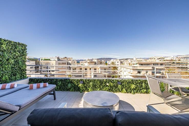 Расположенный на авеню Леринс в Каннах, в востребованном и жилом районе, рядом с магазинами, транспортом и в нескольких минутах от пляжей, этот великолепный дуплекс занимает пятый и шестой (последний) этажи в доме с лифтом, находящемся в хорошо ухоженной собственности.