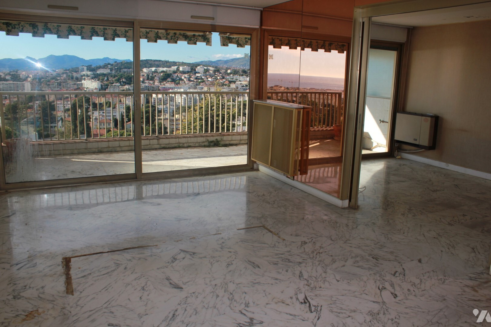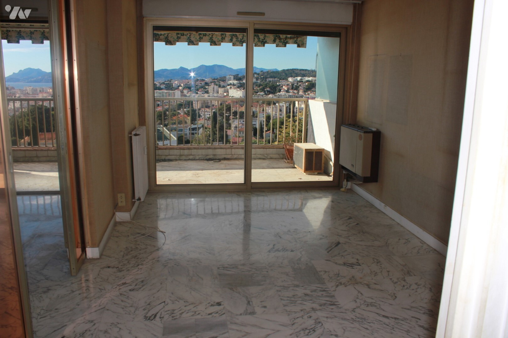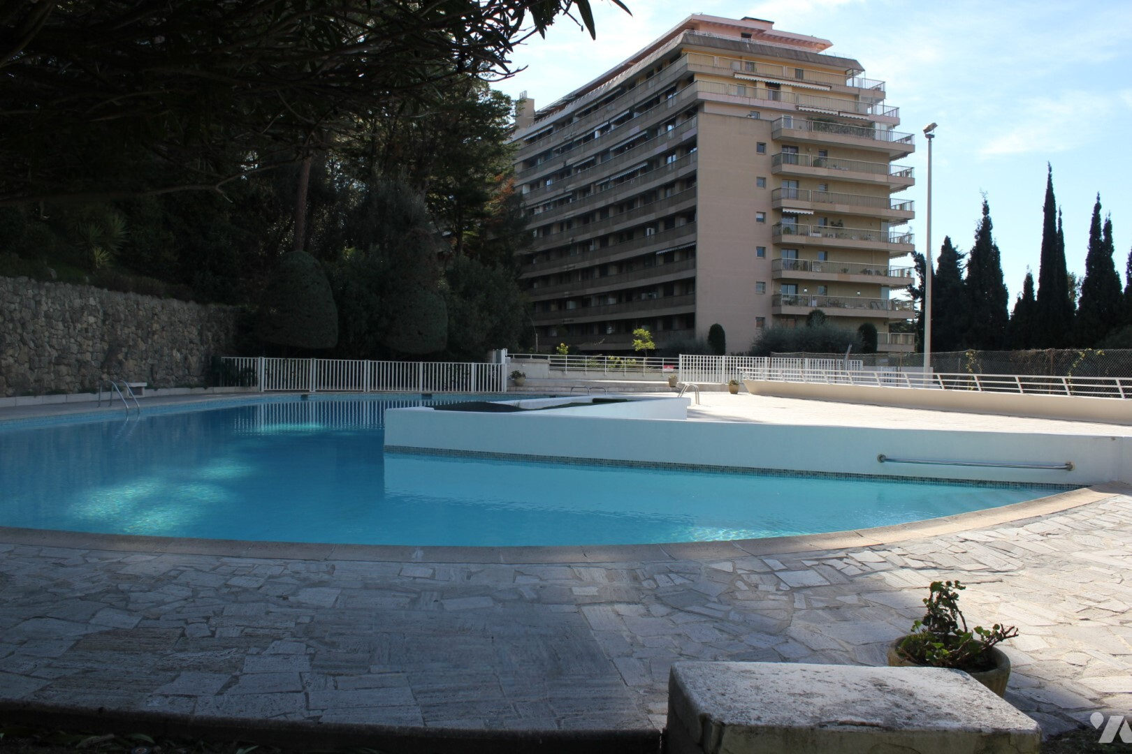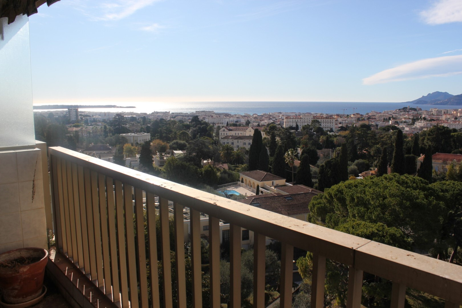 Квартира расположена в престижной резиденции в районе Ля Калифорния в Каннах, известной как Ле Фонтенбло, с бассейном, теннисом и парком. Находится на восьмом этаже, с панорамным видом на залив Канн.