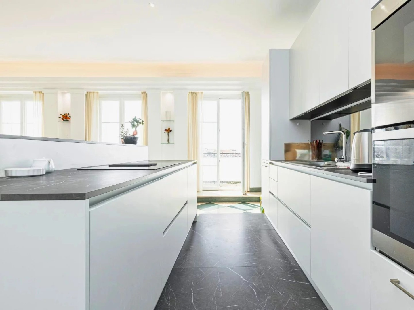 Полностью отреставрированная с заботой, квартира сочетает в себе шарм и современность. Просторные объемы и высота потолков создают ощущение пространства, а оснащение было продумано для современного комфорта при сохранении очарования места. Большая гостиная, залитая светом, гармонично соединяется с оснащенной кухней с четкими линиями, создавая уютное и элегантное жилое пространство.