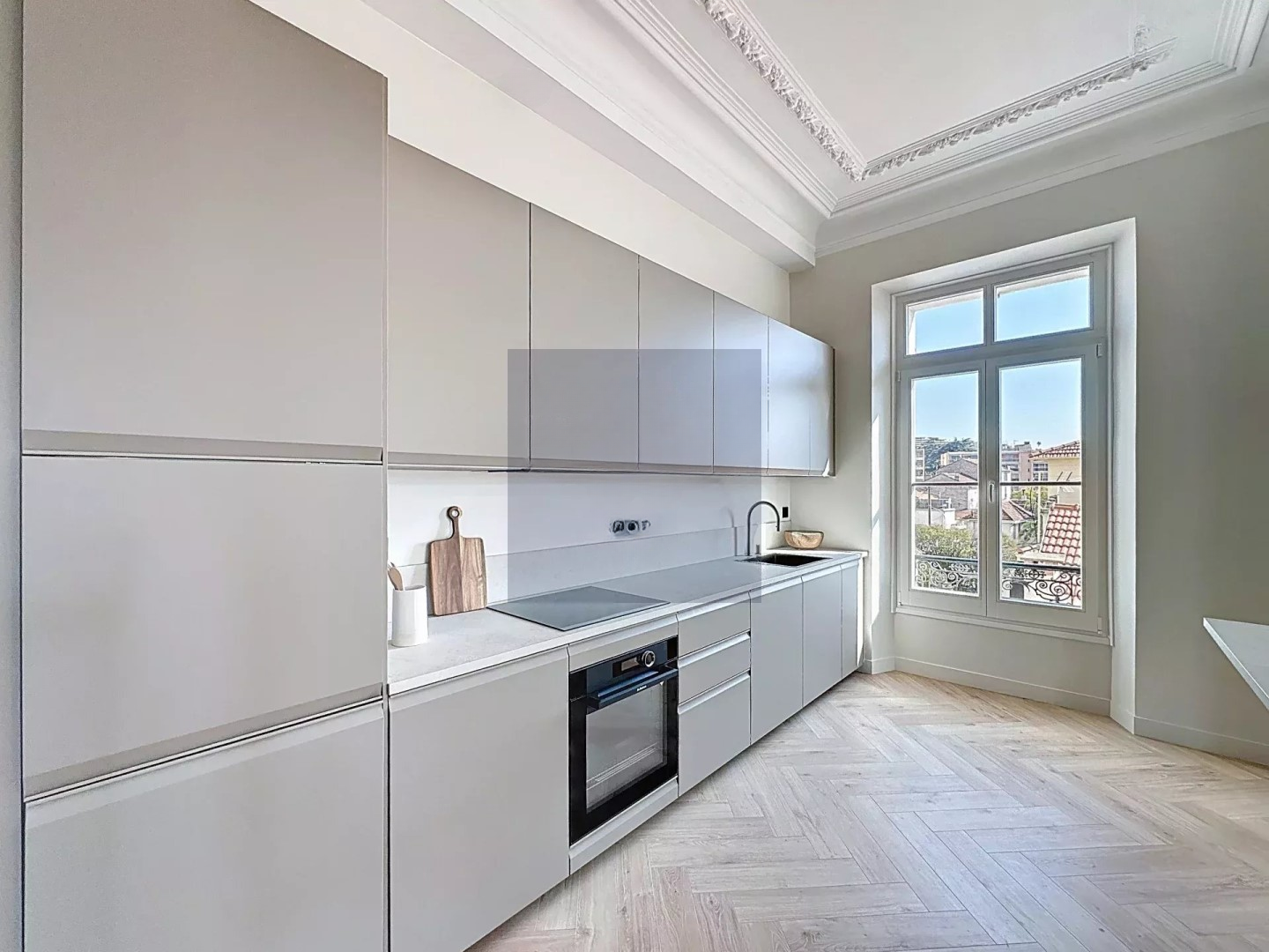 Она состоит из просторной гостиной 40 м² с оборудованной открытой кухней, родительской спальни, двух дополнительных красивых спален, отдельной душевой и гостевого туалета. Частное парковочное место и чердак дополняют этот редкий объект, идеально подходящий для пешеходного образа жизни в самом центре Канн.