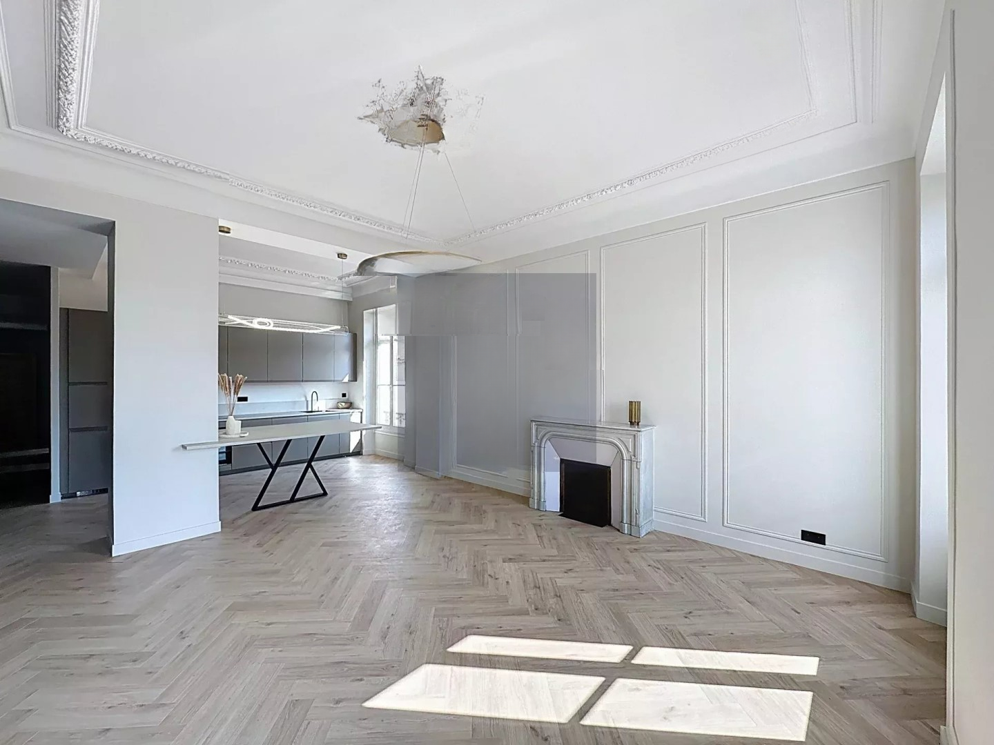 Квартира с кондиционером, роскошно отремонтирована, сохранив очаровательные элементы своей эпохи, смешанные с современными высококачественными удобствами. Общая площадь более 110 м², идеально спланирована архитектором, она ориентирована на юг/юго-восток и имеет замечательную освещенность, красивые пространства с впечатляющими лепнинами и балкон с открытым видом.