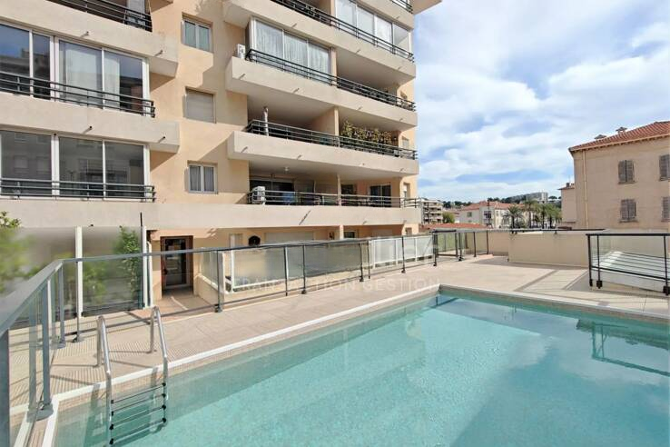 В резиденции с бассейном, расположенной в самом центре Канны-Ла-Бокка, и в непосредственной близости от всех удобств и общественного транспорта, вас ждет эта студия/2-комнатная квартира площадью 32 м² с террасой, обращенной на юг, площадью 14,5 м².