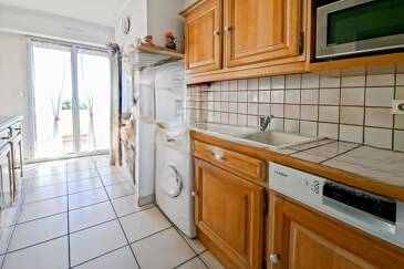 Квартира состоит из прихожей с шкафами, большого гостиного зала/столовой с кондиционером и полностью оборудованной открытой кухни, открывающихся на просторную террасу около 22 кв. м, выходящую на юг и с приятным видом на море.